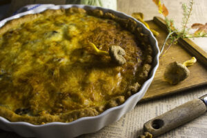 Pour the batter into a greased pan (radius about 22 cm). Bake in the oven at 175 degrees for 40-50 minutes.
