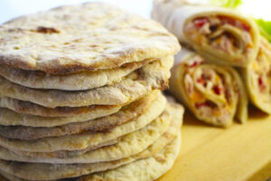 Prepare the meat mixture: Slice the leek. Brown the chicken strips and the leek in fat in a pan. Add the crushed tomatoes, garlic and spices. Simmer for about 5 min. and check the flavor.