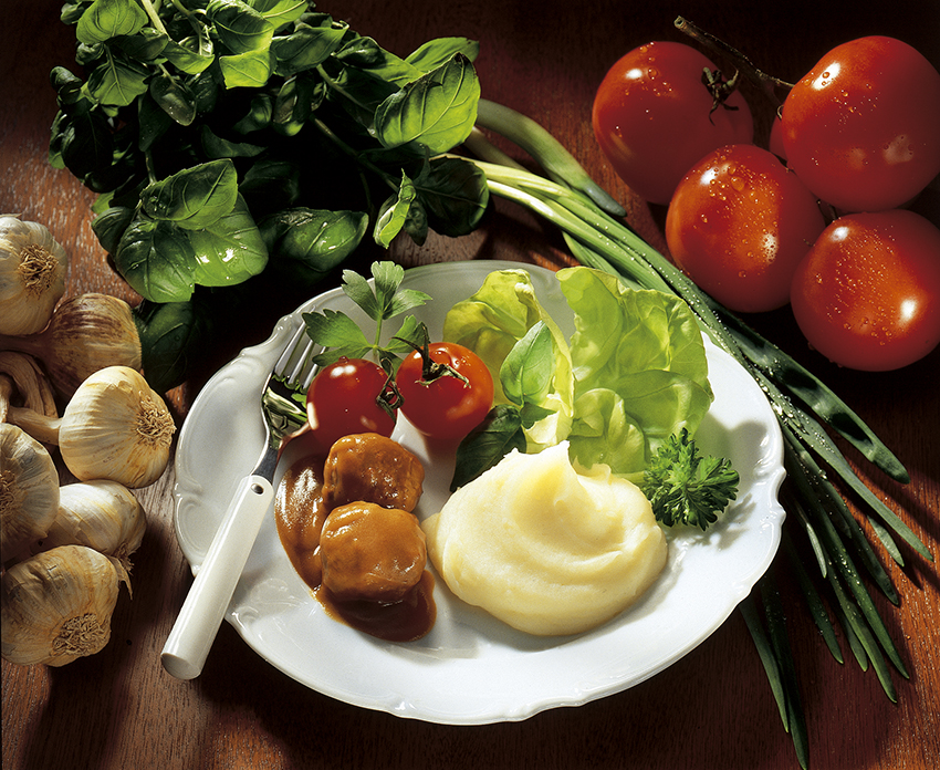Blanda under tiden ingredienserna till tomatsåsen och häll såsen över köttbullarna i formen. Fortsätt grädda ytterligare cirka 15 minuter, tills ytan på köttbullarna är lätt brynt.