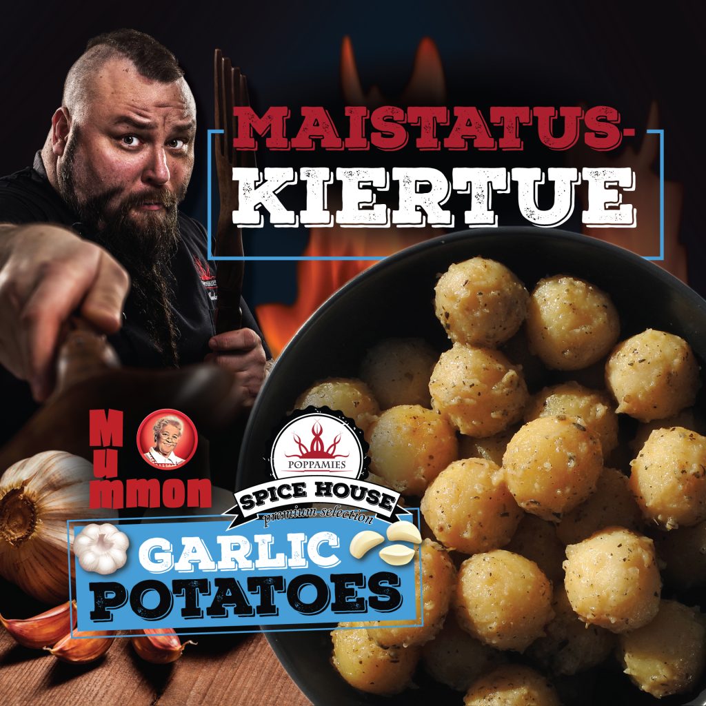 Mummon ja Poppamiehen maistatuskiertue on liikkeellä! Esittelyssä on grillikansan viime kesänä hurmannut tymäkkä yhteistuote, eli valkosipulilla maustetut pariisinperunat. Esikypsennetyt pariisinperunat sopivat pannulle, grilliin tai vaikka sellaisenaan kylmiin salaatteihin.