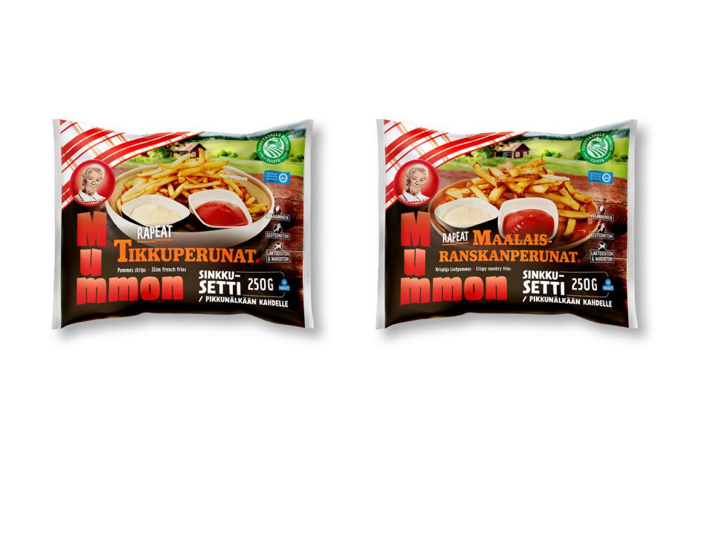 Tutut Mummon rapeat Tikkuperunat sekä Mummon rapeat Maalaisranskanperunat löytyvät nyt myös pienemmissä 250 g pakkauksissa.